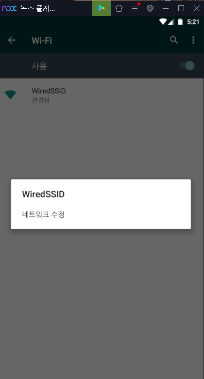 [3] Nox안드로이드 가상 에뮬레이터를 사용하는데 해당 기기에 대한 인터넷 설정을 해준다.