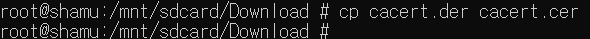 [5] 내부저장소에 인증서가 설치된다. der형식으로 설치가 되는데 해당 확장자를 Nox에서 인식하지 못한다. cer형식으로 인증서 복사