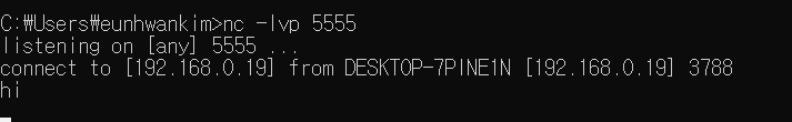 netcat포트 오픈 시 -e cmd.exe 인자를 추가하면 해당 포트로 연결되는 서버에서 명령어를 사용할 수 있다.