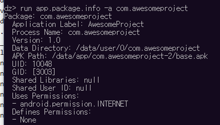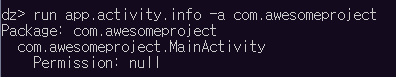 dz> run app.activity.start --component com.awesomeproject com.awesomeproject.MainActivity