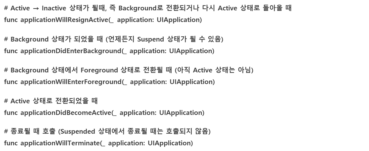 iOS 앱 동작 시 상태 및 호출 함수